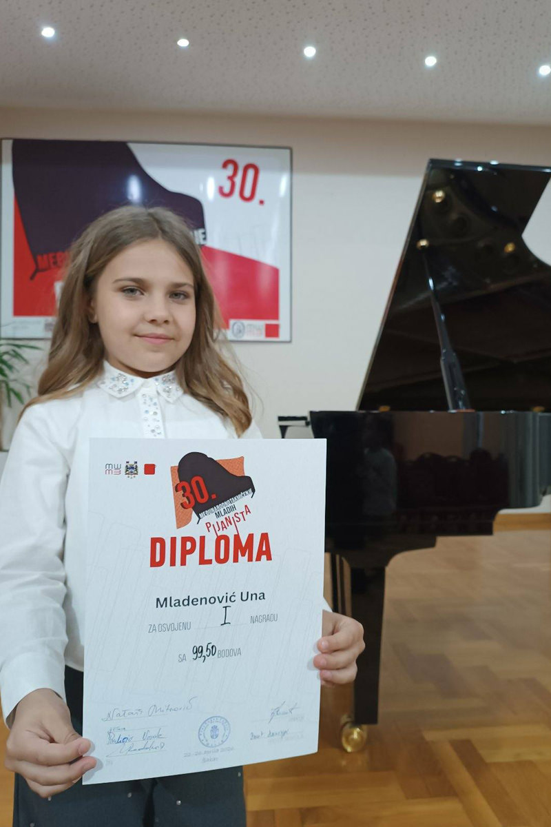 UNA MLADENOVIĆ OSVOJILA PRVU NAGRADU NA TAKMIČENJU MLADIH PIJANISTA